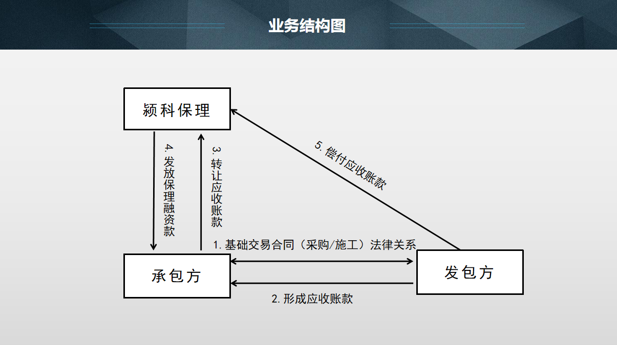 1、正向保理:正向保理以買賣雙方真實(shí)發(fā)生的交易作為背景,賣方提供交易產(chǎn)生的應(yīng)收賬款基本憑證、發(fā)票、合同等相關(guān)資料,由賣方發(fā)起保理融資申請,將應(yīng)收賬款轉(zhuǎn)讓給潁科保理,潁科保理向其提供應(yīng)收賬款賬戶管理、應(yīng)收賬款催收、應(yīng)收賬款融資等一系列綜合性金融服務(wù)。