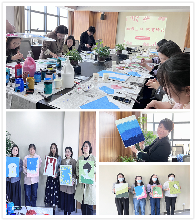 陽(yáng)春三月,萬(wàn)物復(fù)蘇。為慶祝“三八”國(guó)際勞動(dòng)?jì)D女節(jié),豐富女職工精神文化生活,營(yíng)造愉悅溫馨的節(jié)日氛圍,3月8日上午,市潁科創(chuàng)投公司舉辦“春暖三月 執(zhí)筆繪花”手繪肌理畫(huà)活動(dòng),公司全體女職工參加。